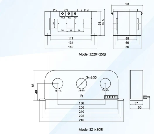 | Модел | Оценен първичен ток (А) | Оценен вторичен ток (А) | Клас за точност | Номинална тежест (VA) | Ниво на изолация (kV/min) |